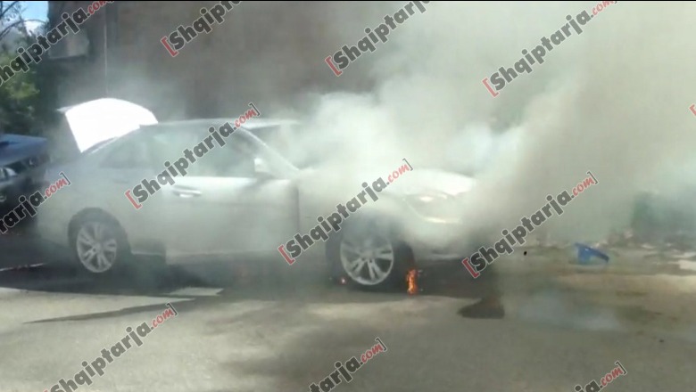 VIDEO/ Mercedesi digjet në mes të rrugës në Librazhd, qytetarët kalojnë të qetë pranë tij