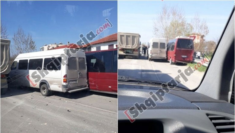29 Mars 2018, 11:40Tre automjete janë përfshirë në një aksident në autostradën Tiranë-Durrës, në afërsi të Sukthit. Dy furgona në tentativë për të marrë pasagjerë janë fërkuar me njëri-tjetrin dhe më pas njeri prej tyre është përplasur me një kamion.