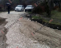 Në fshatin Kuç të Vlorës, erozioni ka sjellë si pasojë shkarjen e rrugës e ndërsa rruga është gërryer nga vërshimi i lumit të Vlorës, i ngarkuar nga shirat.
