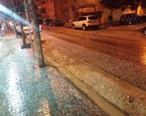 Shiu dhe breshëri ka rënë për disa minuta pa ndërprerë, ndërsa Report Tv ka siguruar pamjet, që kanë zbardhur qytetin për disa minuta.