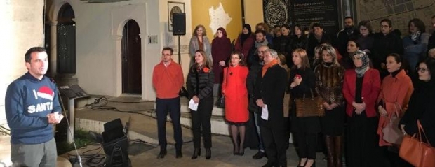 Kulla e Sahatit në Tiranë u ndriçua mbrëmjen e sotme me ngjyrë portokalli, një ndër ngjyrat zyrtare të fushatës UNiTE të Sekretarit të Përgjithshëm të Kombeve të Bashkuara, si pjesë e fushatës globale për të përkujtuar 16 Ditët e Aktivizimit Kundër Dhunës me Bazë Gjinore.