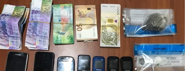 Policia ka arrestuar dy persona, njëri është shpallur në kërkim, ndërsa janë sekuestruar mijëra franga, euro, kokainë dhe fara kanabisi..