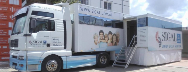 klinikë lëvizëse mjekësoreSIGAL UNIQA Group AUSTRIA, kompania më e madhe e sigurimeve në vend, ndërton klinikën e parë mjekësore lëvizëse në vendin tonë. Sot kjo klinikë është ndalur në Kamëz ku ofruar shërbime falas për qytetarët. Kjo klinikë ka ofruar disa analiza të rëndësishme bazë nisur nga analizat e gjakut apo eko të ndryshme.