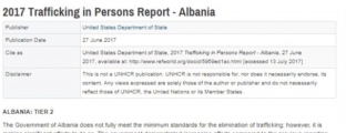 me trafikimin e qenieve njerëzoreEdhe pse janë vënë re përpjekje, qeveria shqiptare nuk përmbush plotësisht standartetet minimale për eliminimin e fenomentit të trafikimit të qenieve njerëzore , thuhet në një raport të Departamentit Amerikan të Shtetit.