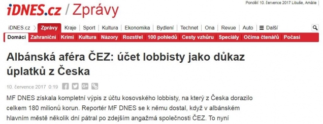 6.8 mln € te sekseri i qeverisë PDSkandali CEZ bën bujë edhe në Çeki, teksa këtë të hënë gazeta më e madhe çeke, IDNES është hapur pikërisht me këtë ngjarje, ku thekson se hetimet kanë nisur edhe në Pragë.