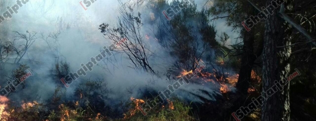 pritet të kërkohet ndihmë nga ajriVijon zjarri në pyllin me pisha në fshatin Kreshpan të Fierit zjarr i cili ka rënë në orët e pasdites dhe që duket se po favorizohet nga era.