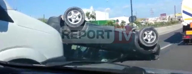 shpëton mrekullisht shoferi/VDDURRES- Një makinë është kthyer përmbys në autostradën Durrës-Tiranë. Ngjarja ka ndodhur paraditen e sotme, ku makina ka humbur kontrollin dhe është kthyer përmbys.