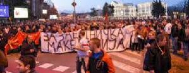 pankarta kundër kundër gjuhësVijojnë protestat në Maqedoni kundër gjuhës shqipe, nën organizimin e iniciativës qytetare “Për Maqedoni të përbashkët”.