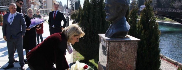 homazhe te busti i Dervish HimësMinistrja e Mbrojtjes, Mimi Kodheli, mbajti një leksion para studentëve të Universitetit Ndërkombëtar të Strugës. Fillimisht ajo u prit në takim nga rektori i Universitetit Ndërkombëtar të Strugës, prof. dr. Bashkim Rama, si dhe stafi pedagogjik i këtij universiteti.