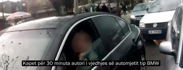 videon e arrestimit të grabitësitVodhi një “BMW” në një servis automjetesh policia kap për 30 minuta 31-vjeçarin. Niko Zaimi, me precedentë të mëparshëm penalë për vjedhje, ka përfituar nga momenti që mekanikët e kishin lënë automjetin të ndezur në hyrje të servisit dhe e ka marrë duke u larguar me shpejtësi.