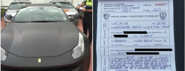 tek 21-shi, gjobitet me 3 mijë lekëPas lajmit të publikuar dje në media se policia nuk gjobiti një automjet Ferrari të parkuar gabim në rrugët e Tiranës, policia ka njoftuar se ka gjobitur mjetin me 30 mijë lekë të vjetra. Në njoftimin zyrtar të Policisë së Tiranës, shkruhet se “Ferrari” nuk u gjobit ditën e djeshme pasi makina është me targa të huaja dhe nuk mund t’i vendoset gjobë në mungesë të drejtuesit.