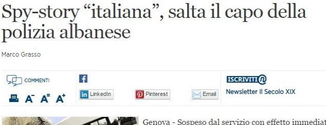 Pajisja hyri nga kanalet diplomatikeDisa prej mediave italiane i kanë bërë jehonë pezullimit të kreut të policisë ditën e djeshme. Sipas të perditshmes Il Secolo pajisja hyri në Shqipëri në mënyrë të fshehtë në 11 mars përmes kanaleve diplomatike.