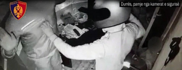 fëmijës për t'i marrë lekët të atitSiç duket edhe në video, grabitësit kanë plaçkitur disa biznesve duke iu marrë shuma të konsiderueshme të hollash. Por, në një moment ata terrorizojnë edhe një të mitur, duke i drejtuar atij armën, në mënyrë që babai i tij tu dorëzojë xhiron ditore të biznesit.