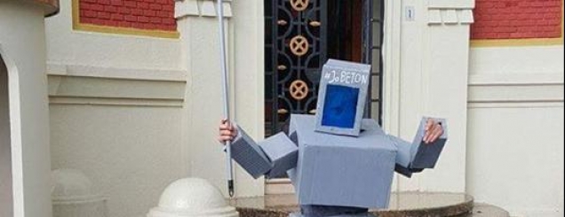 së Tiranës.... nga Zirkon DishaZirkon Disha, një nga aktivistët e shoqërisë civile ka krijuar një mini kënd betoni dhe duke u mbështjellë me të ka qëndruar përpara godinës së Bashkisë së Tiranës për disa orë.