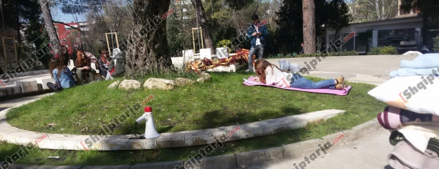 17 Mars 2016, 10:34Shoqëria civile duket mjaft e vendosur për të ndalur ndërtimin e këndit të lojërave tek parku i liqenit në kryeqyte. Që nga mbrëmja e së mërkurës aktivistë të saj janë vendosur në vendin ku Bashkia ka parashikuar të bëjë një kënd zbavitës për fëmijët e kryeqytetit. Ajo çka bie në sy është kjo vajzë e cila po mëson e shtrirë në barin e gjelbër dhe nën rrezet e diellit.
