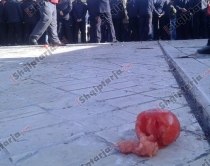 e pëson edhe shefi i komisariatitNdërsa në protestën e 8 dhjetorit protestuesit e grumbulluar nën organizimin e Partisë Demokratike ishin pajisur me vezë e tymues me ngjyrë blu, këtë të enjte në protestën e dytë të kësaj "stine - revolte" që të djathtët kanë nisur kundër qeverisë, qytetarët në protestë janë pajisur me fruta perime, vezë dhe miell.
