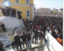 që sulmuan qeverinë dhe bunkerinVija e parë e sulmit të protestuesve të opozitës, të cilët qëllonin pa ndalim selinë e Kryeministrisë me gurë dhe pllaka të shkulura në bulevard si dhe me shkopinj e vezë, ishin një grup të rinjsh të veshur njëlloj me të zeza.