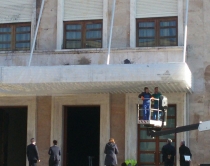 2015 drejt rikthimit në normalitetVepra e Philippe Parrenos që një ditë më parë u bë epiqendra e dhunës nga protestuesit po i rikthehet normalitetit. Ajo ishte goditur me gurë, shkopinj, vëzë etj.