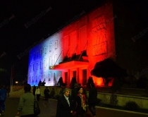 ngjyrat e flamurit kombëtar francezShqipëria është solidarizuar me Francën me mesazhet ngushëlluese dhe me dënimin me forcë të sulmeve terroriste në Paris. Por veç kësaj kryeministria këtë mbrëmje ka ndezur dritat me ngjyrat e flamurit kombëtar francez. Fasada e kryeministrisë është e gjitha e veshur me ngjyrat simbol te flamurit francez, e kuqe, e bardhe dhe blu.