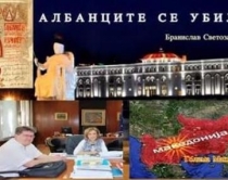 provokon dhe ndryshon kufijtë"Shqiptarët janë vrasës" është libri i publikuar në Shkup, nga Drejtori i Muzeut të Luftës, Branisllav Svetozareviç. Në libër, përvec titullit ofendues për shqiptarët, autori ka përfshirë territorin e Shqipërinë në hartën e Maqedonisë së Madhe.