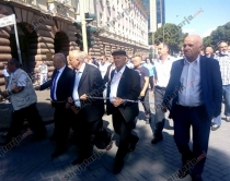 FOTO/Ish-të përndjekurit me zinxhirëIsh-te perndjekurit politike i dorezuan presidentit Nishani nje note proteste kunder mazhorances qeverisese ne shenje revolte kjo, ndaj asaj qe ata e quajne "rikthim ne komunizem" dhe qe u nxit nga ndertimi i bunkerit me qëllim turistik pranë Ministrisë së Brendshme.