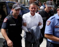 i buzëqeshur në Gjykatën e LartëArmando Prenga zbriti rresh mesditës nga furgoni i policisë për t’iu drejtuar Gjykatës së Lartë, ku do të mësonte masën e sigurisë. I veshur me kostum gri dhe këmishë të bardhë, ai mbahej nga krahët nga dy efektivë të forcave “Shqiponja”. Prenga këtë herë nuk mbante kravatë, por në duar kishte një xhaketë me të cilën po përpiqje të mbulonte prangat.