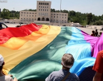 12 Qershor 2015, 10:50Një flamur i madh shumëngjyrësh i komunitetit LGBT është shpalosur të enjten në Bulevardin Dëshmorët e Kombit në kryeqytet. Një element që tingëllon cuditshëm kur Dita ndërkombëtare e këtij komuniteti ka kaluar tashmë, e madhe me atë rast u bë edhe një marshim paqësor në rrugët e kryeqytetit.