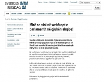 vjen tashmë edhe në gjuhën shqipeNë web faqen e Parlamenti të Suedisë informacionet që ofron kjo faqe, tashmë mund të lexohen edhe në gjuhen shqipe.