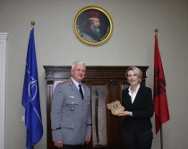 takim me gjeneral Warner FreersMinistrja e Mbrojtjes, Mimi Kodheli, u takua sot me shefin e Shtabit të Komandës së Aleancës për Operacionet (ACO), gjeneral Werner Freers, i cili po merr pjesë në Konferencën e NATO-s që po zhvillohet këto ditë në vendin tonë