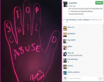 “Stop dhunës ndaj fëmijëve”Këngëtarja Rona Nishliu ka nisur nëpërmjet rrjetit social Instagram një fushatë kundër dhunës ndaj fëmijëve. Fushata konsiston në vizatimin e njërës dorë dhe mbishkrimit "Stop child abuse" mbi të.