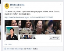 Shkëlzeni: Nuk është faqja e sajShkëlzen Berisha I ka kërkuar miqve të tij të Facebook që të raportojnë faqen e Liri Berishës në të cilën u publikua sondazhi pasi sipas tij kjo nuk është faqja e saj e vërtetë
