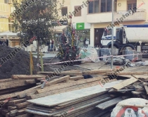 e zbukuruar me....fadroma ndërtimiAtmosferës së festave të fundivitit i është bashkuar edhe qytetit i Librazhdit. Siç duket në këtë foto edhe në këtë qytet është vendosur Pema e Krishtëlindjeve. Bredhi, modestë për nga madhësia është zbukuruar në mënyrë të çregullt, sipas shijes së librazhdiotëve.