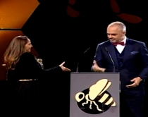 “Bletën e artë”, ... por jo dorënNë organizimin e mbrëmjeve gala, nuk mund të mungojnë “ngatërresat” apo “incidentet” më të vogla, siç është prej tyre në momentin e shtrëngimit të duarve. Një situatë e tillë është krijuar gjatë ndarjes së çmimeve “Bleta e artë 2014”, ku kryeministri Rama pasi i ka dhënë çmimin drejtores së Tatimeve Briseida Shehaj, janë "ngatërruar" në dhënien e dorës.