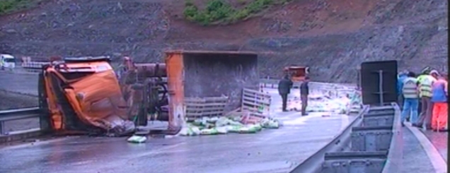 rrëzohet në greminë me kamionNjë 47-vjeçar është plagosur rëndë pasi kamioni të cilin ai drejtonte është rrëzuar në një greminë. Sabah Toska mësohet se po dërgonte materiale në Hidrocentralin e Gjegjanit që po është në ndërtim.