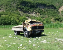 mrekullisht çifti e mbesa 8 vjeçareTIRANE/ Vetëm fati ka shpëtuar drejtuesin e këtij kamioni, bashkëshorten dhe mbesën 8 vjeçe. Kamioni i ngarkuar me gurë nuk ka mundur të hyjë në kthesë dhe ka dalë nga rruga dhe duke bërë një rrotullim të plotë ka përfunduar në arë. Shkak për aksidentin është manovra për zbritjen e marshit në dishezë