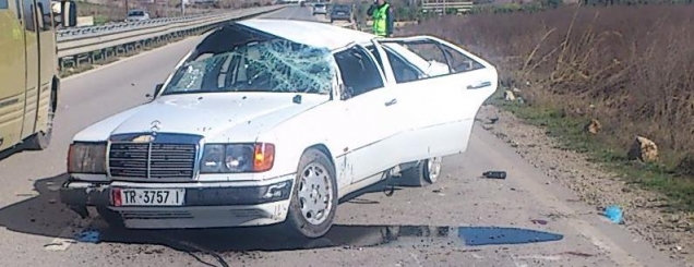 plagosur, mes tyre babë e biNjë aksident me 3 persona të plagosur ka ndodhur në aksin Lushnje - Fier pranë fshatit Vajkan ditën e sotme(16.02.2014).(Foto: Makina e aksidentuar)