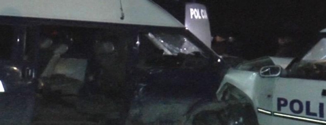 burgjeve, 12 policë të plagosuDy furgonë të Policisë së Burgjeve dhe një fuoristradë policie, janë përplasur me njëri-tjetrin në Nosovoselë të Vlorës rreth orës 21:00 të mbrëmjes së sotme. Efektivët ishin nisur nga Tirana për inspektim në burgun e Vlorës. Shkak për aksidentin mendohet të jetë një manovrim i gabuar i makinës që ishte në krye të kolonës. Dy të plagosur nisen për Tiranë. (Në foto: Makinat e përplasura në vendngjarje)