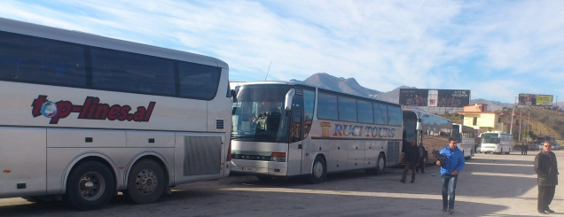 Kakavijë, 20 autobusë në pritjeKorrespondenti ynë në Gjirokastër, Piro Nase thotë se që prej orës 07:00 të mëngjesit të sotëm janë të bllokuar mbi 20 autobusa të linjës Tiranë-Athinë të cilët presin të kalojnë. (Ne foto: Autobuset e bllokuar sot ne mengjes)