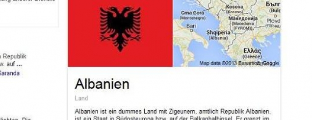 "Vend i marrë e me ciganë"!Në faqen e Wikipedias mbi Shqipërinë në gjuhën gjermane, që në fjalinë e parë mund të lexoheshin “epitete” të tilla fyese dhe raciste si ”Shqipëria është një vend i marrë me ciganë”.