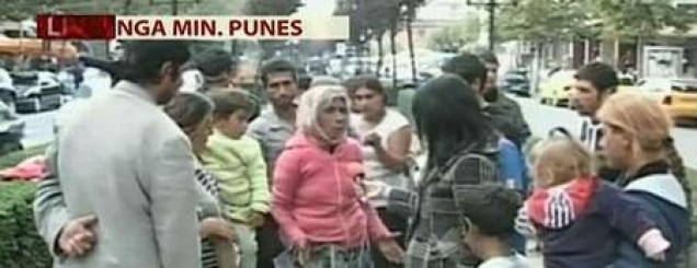 Na gënjyet për strehiminDisa familje të komunitetit rom që u lanë të pastrehë nga bashkia e Tiranës protestuan sot para ministrisë së Punëve dhe Çështjeve Sociale, kundër ministrit Spiro Ksera se nuk mbajti premtimin e dhënë për strehimin e tyre. Gazetarët e Tv A1 Report fillimisht u penguan të filmonin dhe të raportonin Live protestën e komunitetit rom. por më pas u lejuan (Në foto gazetarja Gentiana Haxhiu, duke pasqyruar protestën, para se të ndërhynte policia)