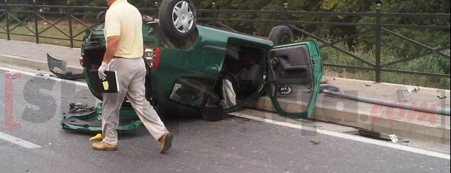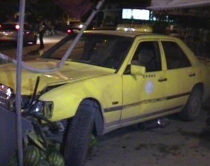 me makinë dy kalimtareAksidenti ndodhi pranë doganës kur automjeti taksi tip benz, ka humbur kontrollin duke dalë nga rruga dhe duke hipur mbi trotuar.