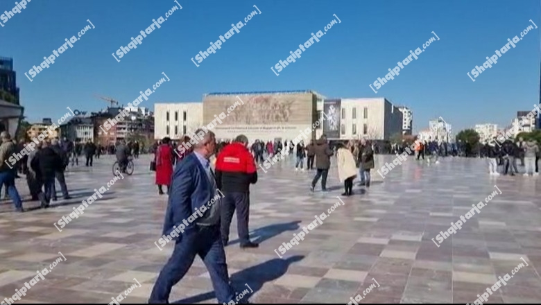 ‘Kamza i del Zot Shqipërisë’, 15 protestues shpalosin banderolën në shesh