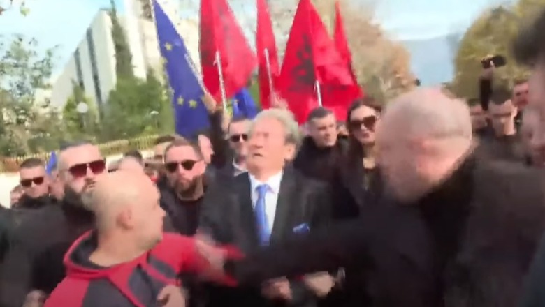 VIDEO/Protesta del jashtë kontrollit, Berisha qëllohet me grusht në fytyrë