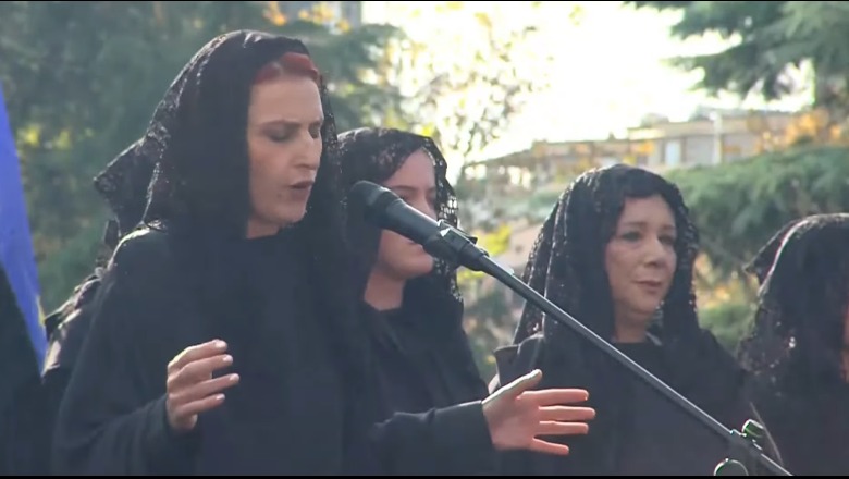 6 Dhjetor 2022, 13:09Në protestën e thirrur nga Sali Berisha është shfaqur një simbolikë “Kortezhi i dhimbjes shqiptare”. Gratë e veshura në të zeza i kanë kushtuar këngë vaji kushtuar birit të humbur.