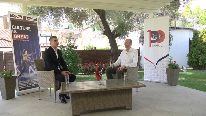 31 Gusht 2022, 21:01Ambasadori britanik Alastair King-Smith në Tiranë zbardh surprizat e javës kulturore britanike që starton në 1 shtator. Që nga loja e kriketit në Sheshin Skënderbej dhe deri tek koncerti i kengetares Rita Ora në 6 shtator po në Tiranë, ambasadori britanik nënvizoi se është momenti i përsosur për të forcuar lidhjet.