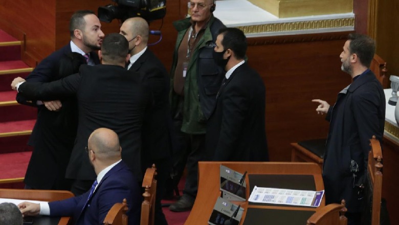 16 Nëntor 2021, 11:33Ka degraduar deri në tentativë për konfrontim fizik debati mes deputetit të Partisë Demokratike Ervin Salianjit dhe socialistit Erion Brace në parlament. Shkak për përplasjen u bë akuza e Salianjit drejtuar Braces se ka dalë në përgjimet italiane për Rezart Taçin.