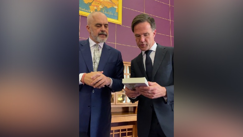 VIDEO/ Momenti kur Rama 'mbulon' me dhurata kryeministrin holandez, Mark Rutte
