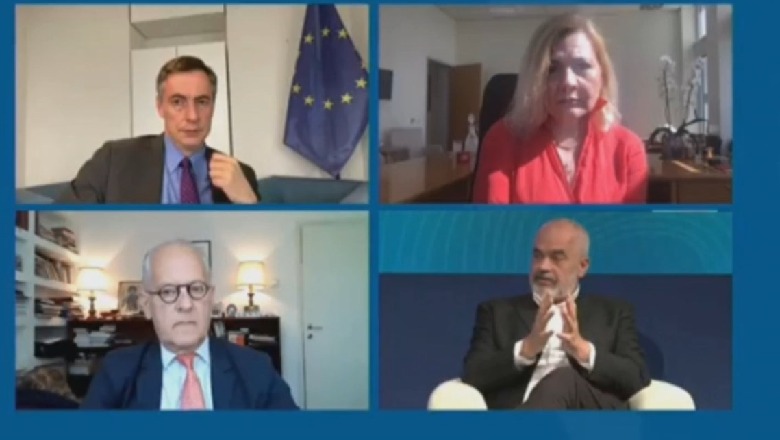6 Maj 2021, 16:36Para Samitit Evropian mbajtur në Itali, Rama foli për fitoren e mandatit të tretë dhe objektivin për integrim në BE. Me synimin për të lënë larg politikën e brendshme konfliktuale Rama tha se rruga e reformave është për të garantuar mirëqenien e brezave të ardhshëm.