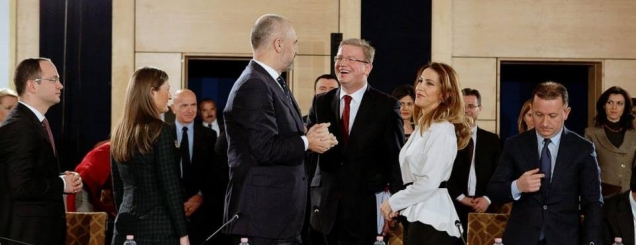 financiarisht dhe me ekspertizëKE është i gatshëm ta mbështesë Shqipërinë me ekspertizë dhe mbështetje financiare. Kjo është bërë e ditur nga Komisioneri për Zgjerimin e BE-së Stefan Fyle, dhe është një nga 11 konkluzionet e publikuara sot nga takimi i dytë i Dialogut të Nivelit të Lartë Shqipëri-BE. Fyle vuri theksin tek fokusimi tek 5 përparësitë kyçe. (Ne foto: Rama dhe Fyle dje në kryeministri)