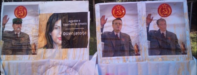 fotove të Topallit e BerishësIsh-të përndjekurit politikë protestuan sot paradite para Kryesisë së Kuvendit. Në shenjë proteste për talljen, ish-të përndjekurit goditën me vezë fotot e Kryetares së Parlamentit Jozefina Topalli, kryeministrit Sali Berisha dhe ministrit të Financave Ridvan Bode.
